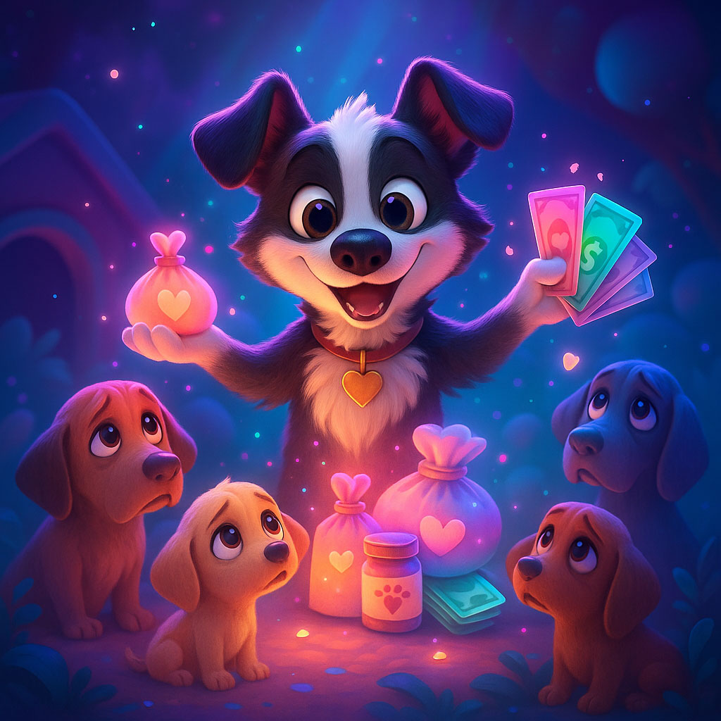 Auf seiner Reise lässt Oreo hinter sich einen Dollarregen, der anderen Hunden Hoffnung, Chancen und neuen Reichtum schenkt. Jeder Schein ist ein Zeichen seiner Botschaft: Niemand bleibt zurück.